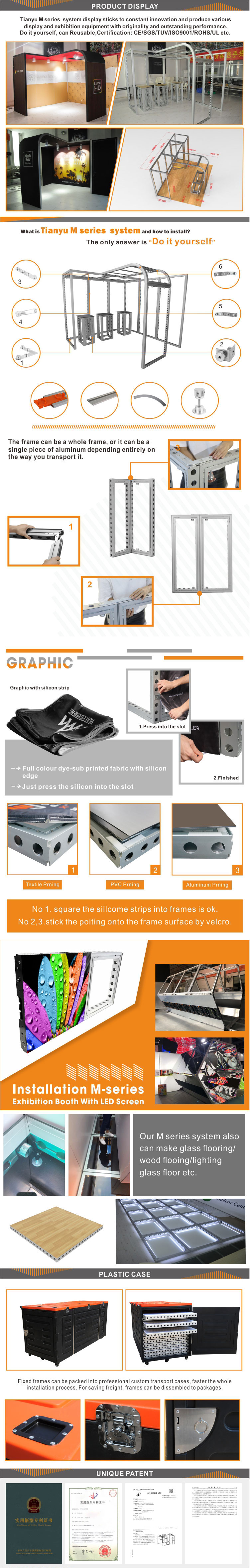 | Estruturas | Perfil de extrusão de alumínio+ tecido tensionado / estrutura de material misto. |
